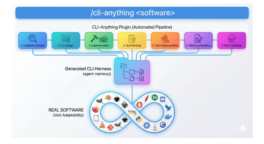 除此之外,研发运维、创意设计、科研等场景,同样能被CLI-Anything彻底盘活。研发运维同学可串联代码编辑、构建、测试、部署全流程,减少人为失误;创意从业者不用再逐个点击软件按钮,编程式控制创作、渲染,批量产出效率拉满;科研人员则能让Agent自动化处理科研工作流、仿真模拟,从重复计算中解放,专注核心创新。