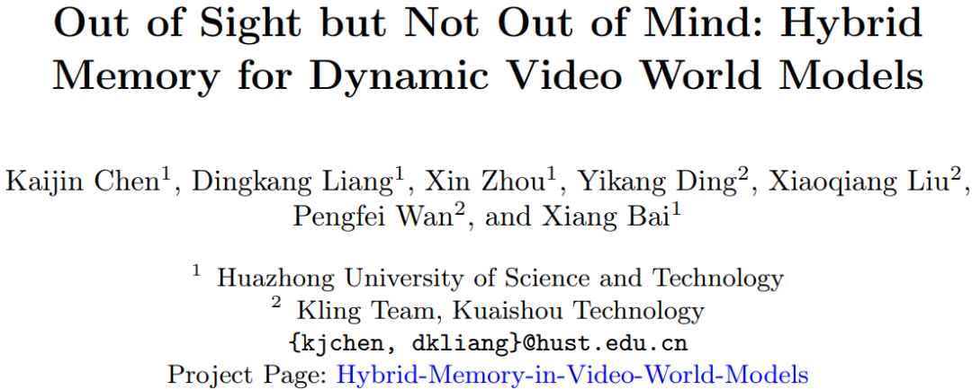 论文标题:Out of Sight but Not Out of Mind: Hybrid Memory for Dynamic Video World Models