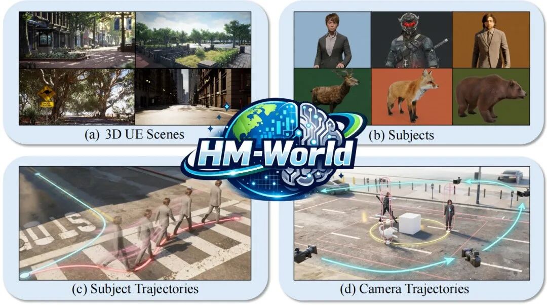 该数据集包含 5.9 万个视频片段,特意将相机轨迹与对象运动轨迹解耦,从而创造出大量对象先滑入未观察区域而后重新出现的自然实例。此外,HM-World 展现出卓越的多样性,涵盖 17 种风格迥异的场景、49 种不同对象(包括多种外观的人类及多个动物物种)、10 种对象运动路径以及 28 种相机轨迹类型。HM-World 具有两个核心特性:
