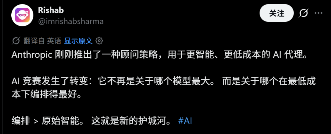 也有开发者提出自己的见解,认为AI竞赛又开始转向零一条赛道,也就是从“最佳模型”开始转向“最低成本的高性价比编排”。