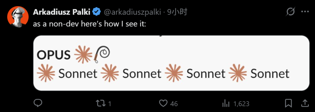 并且,对不少开发者来说,选用Opus其实是无奈之举。在许多开发场景下,只有Opus模型的性能才能较好地完成任务,而目前尚未有其他模型能够完美替代Opus,选用Opus这一昂贵的模型也就导致了用户消耗token非常快。