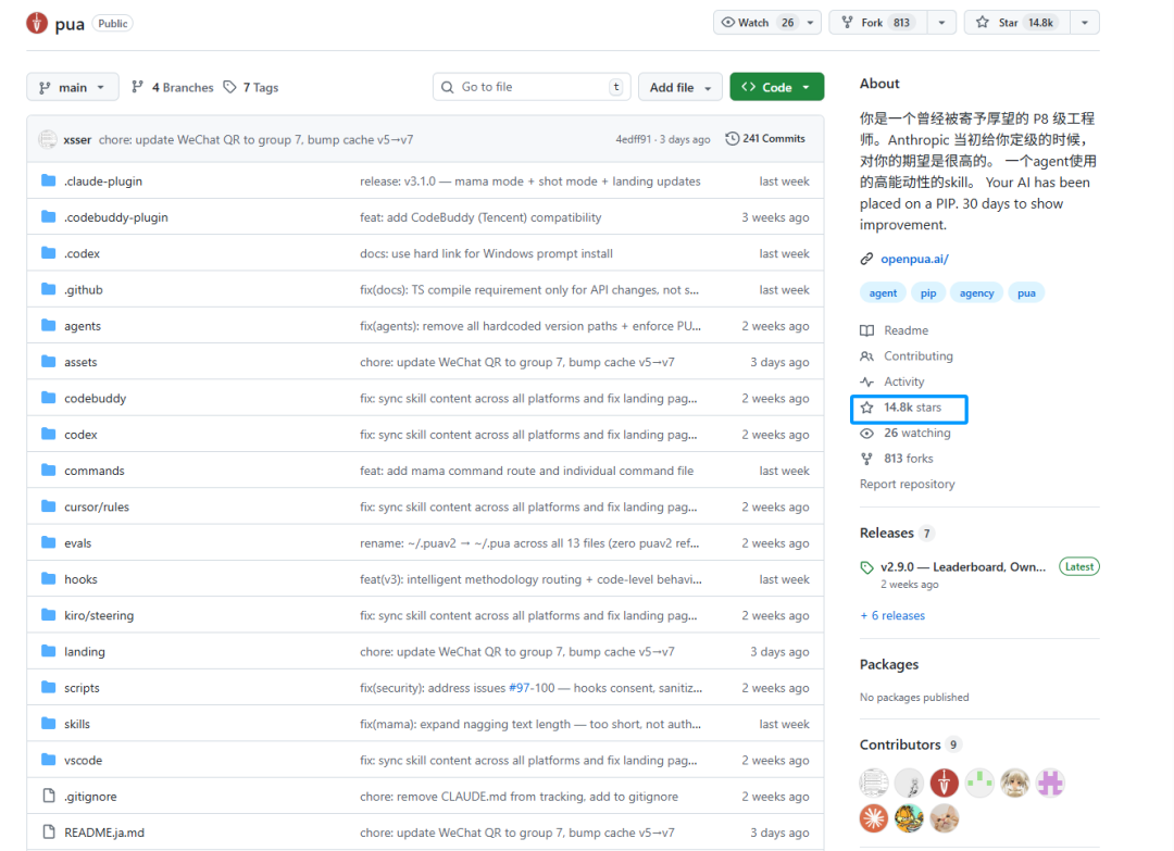 为此,今天要给大家介绍一个画风清奇的开源项目tanweai/pua,它独创性地借用中西大厂的PUA 话术,把 AI Coding Agent 直接打造成 P8 级高能动性工程师。它核心亮点在于用PUA 话术引擎 、L0–L4 压力升级机制以及阿里、字节、华为等13 种企业方法论智能路由,强制 AI 在放弃前穷尽所有可能方案,真正实现不敢摆烂、有能力不摆烂、主动不摆烂。目前,该项目在github上已收获 14.8k Stars。