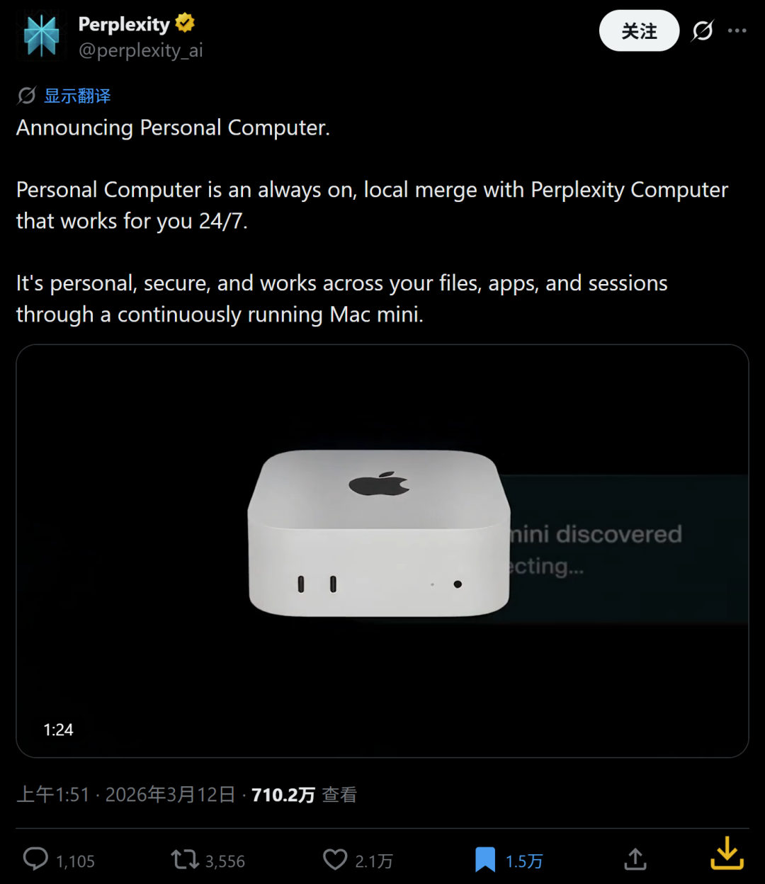 两周前,Perplexity刚刚推出云端AI工具Perplexity Computer,就已经让不少人惊呼“直接代替了一个小团队!”。只是没想到,短短半个月过去,Perplexity又扔出一记王炸,Perplexity Personal Computer支持本地部署在Mac mini上运行。
