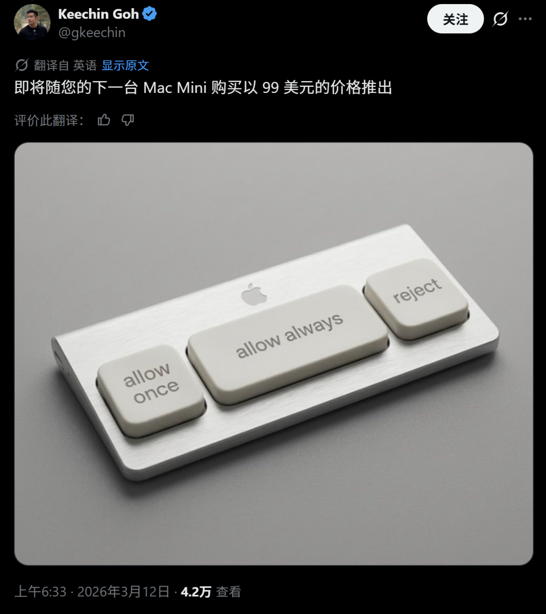 一方面,推动AI从以往的云端助手、Api响应向软硬件结合转型,刺激硬件厂商与AI公司合作,以至于有网友调笑道以后Mac mini的键盘只剩下三个按键:本次允许、总是允许、拒绝;另一方面,隐私和安全这两个AI时代绝不容许忽视的问题将会倒逼竞争者提高标准,最终造福消费者。