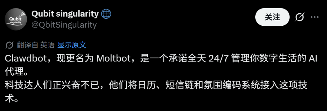 同样有用户称,作为一个超级Agent的雏形,Moltbot将会是一个24/7管理人们数字生活的智能体。