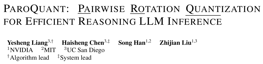 现有 PTQ 方法要么无法充分抑制异常值,要么在推理阶段引入显著的计算开销。为此,NVIDIA联合加州大学圣迭戈分校提出了成对旋转量化(Pairwise Rotation Quantization, ParoQuant)。该方法融合了硬件友好的可优化 Givens 旋转与通道级缩放,有效均衡了各通道间的数值幅度,并显著缩小了每个量化组内部的动态范围,从而大幅缓解由异常值引起的量化误差。此外,英伟达还协同设计了专用的推理内核,充分挖掘 GPU 的并行计算能力,确保旋转与缩放操作在运行时保持轻量高效。