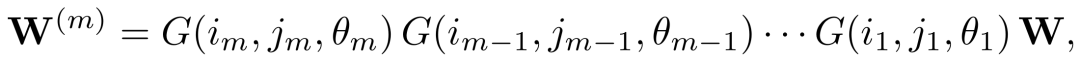 其中 G(ik , jk , θk) 是一个Givens旋转,它仅对矩阵中的第 ik 行和第 jk 行进行旋转,而保持其余行不变。