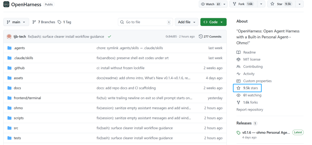 为此,今天要给大家介绍香港大学数据智能实验室的开源项目OpenHarness。它无需复杂配置,一条命令就能启动,兼容Claude、OpenAI、Kimi、DeepSeek、Ollama等几乎所有主流模型。让Agent Harness从大厂特权,变成了每个开发者都能轻松上手的基础工具。该项目仅开源10天,就在github上收获9.5k Stars。