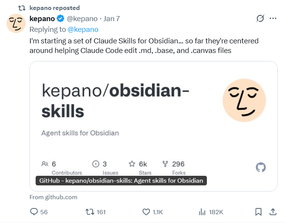 9天暴涨6.6k Star!Obsidian CEO 开源三大专属Skills,Claude Code不再乱改笔记格式